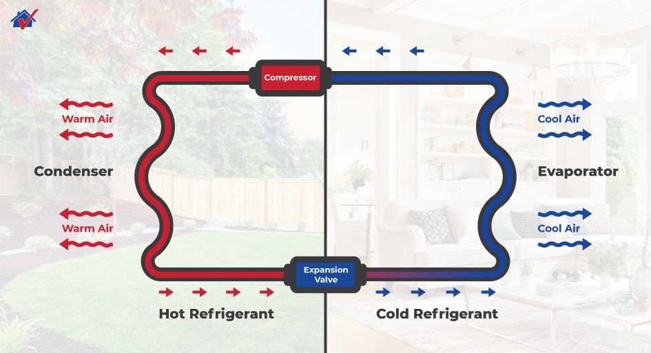 - Finally, the condenser blows outdoor air across its set of coils. This removes the hot air from your home that was absorbed by the refrigerant, before returning the refrigerant to your home.